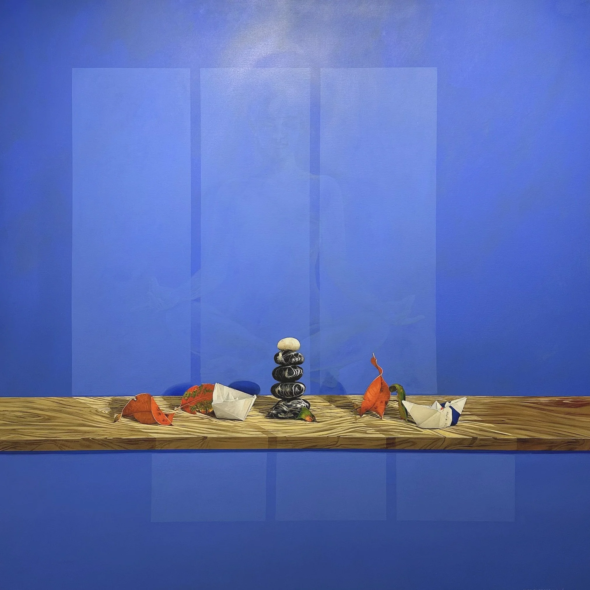 Bodegón con 2 barcos de papel Artista: Ivan Lobo-GuerreroMaterial: Óleo sobre lienzoMedida: 59” x 59” Más Información